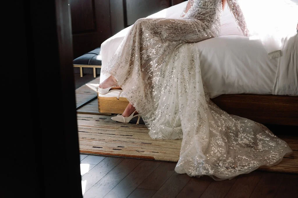 Cait spent the morning in the Penthouse Suite at Hotel Renegade, which offered the most beautiful natural light and plenty of space for her bridesmaids and mother to get ready by her side. The suite provided a relaxed, elegant setting where the beauty team could work comfortably while everyone enjoyed the excitement of the morning. It was the perfect backdrop for those intimate, joy-filled getting-ready moments.