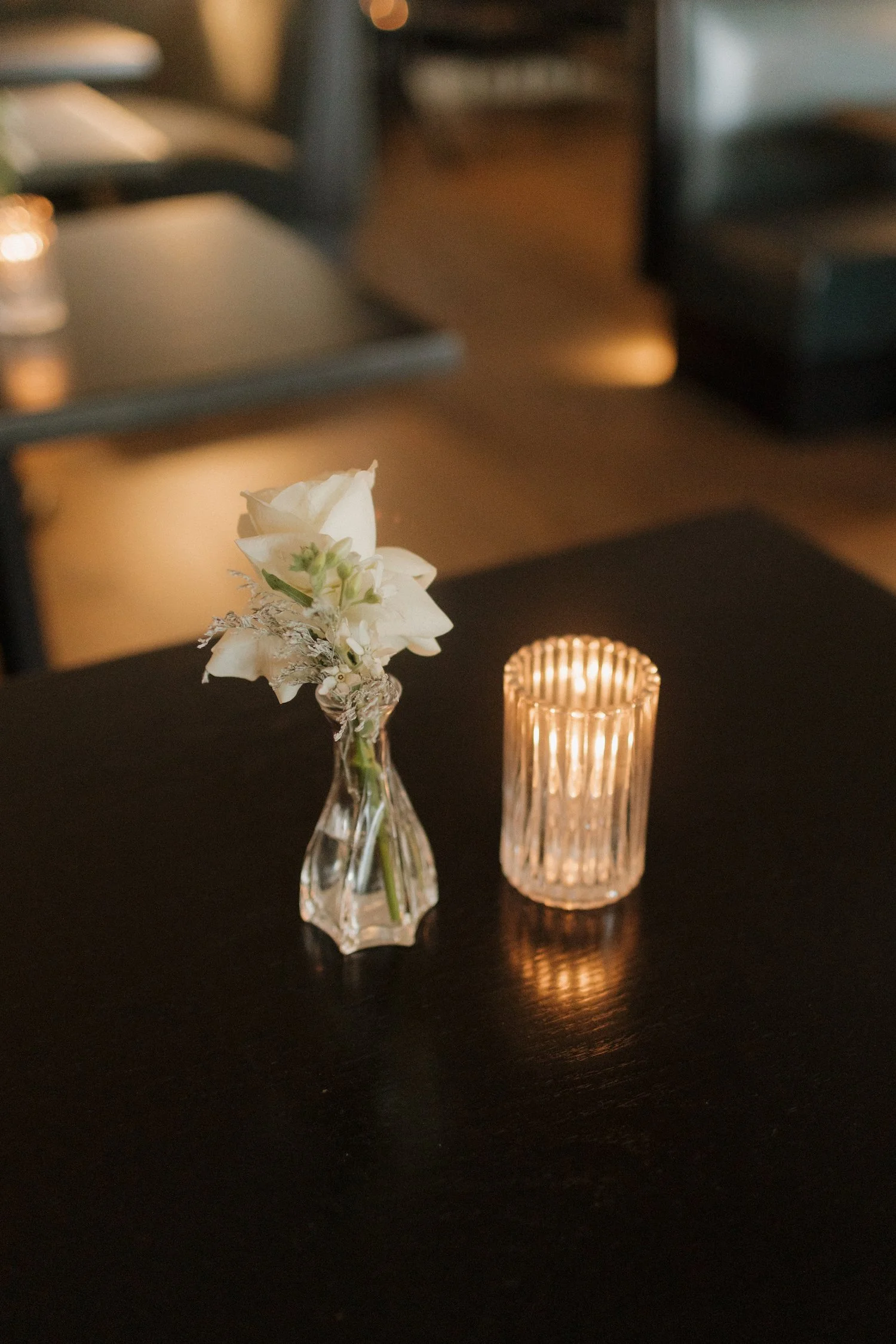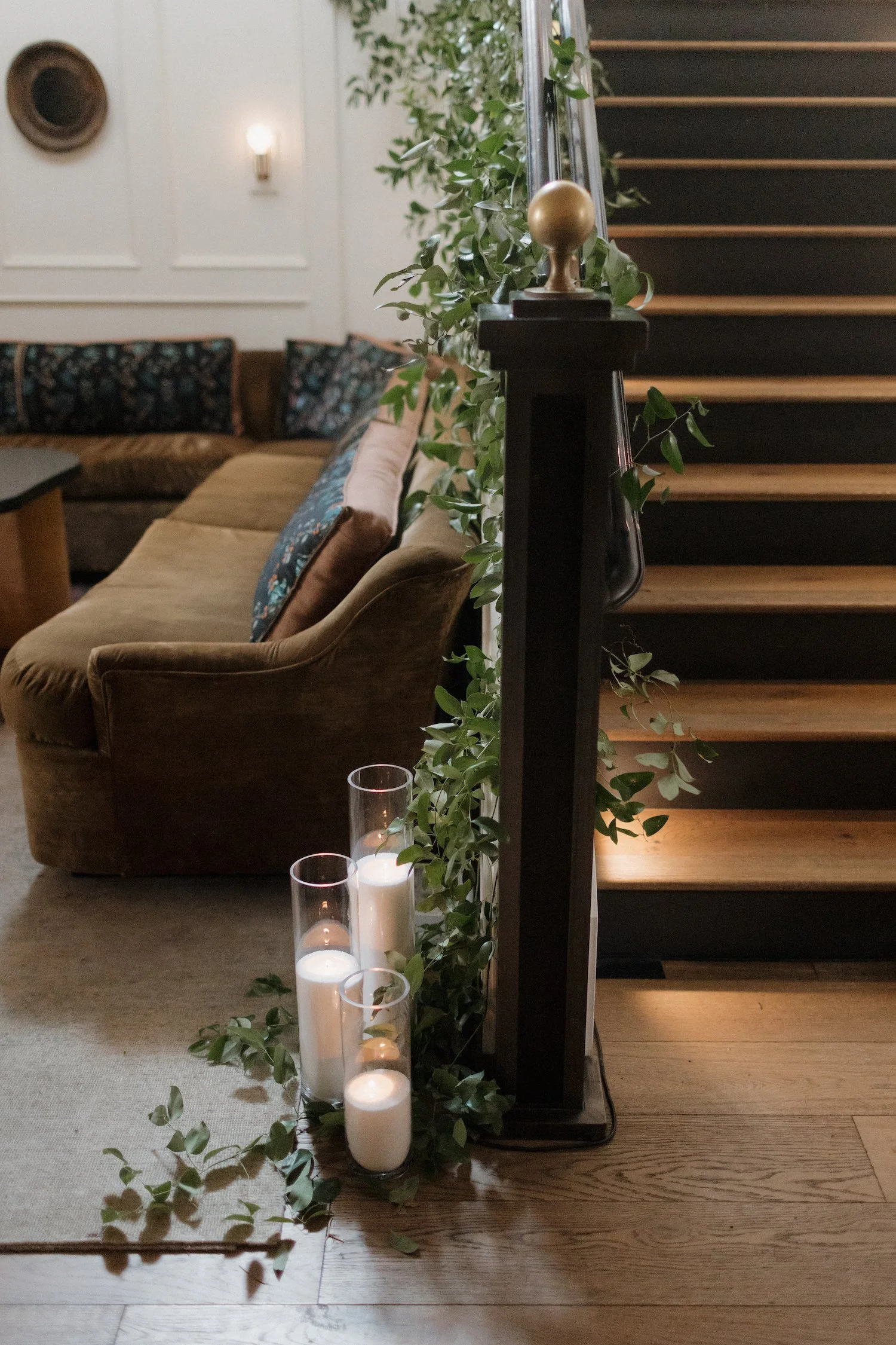 The reception design featured soft greenery, candlelight, and intentional tablescapes that complemented the venue’s moody elegance. Every design decision was made to enhance—not overpower—the space, allowing guests to feel both welcomed and wowed.